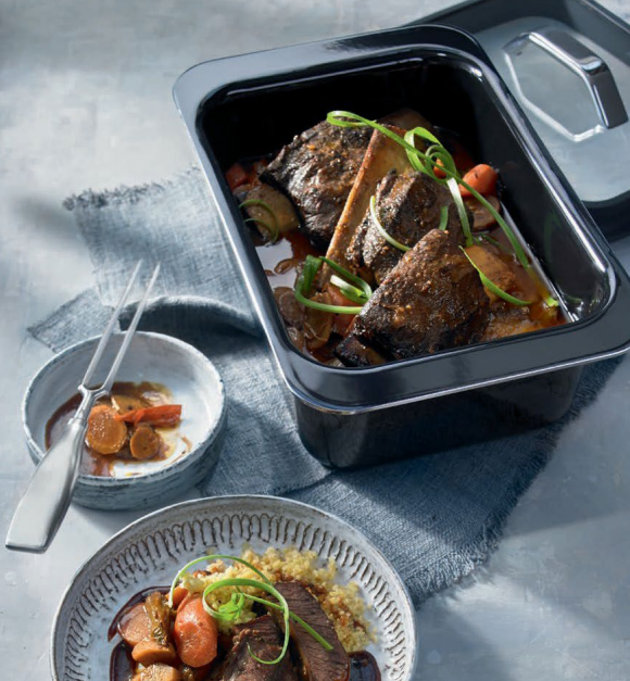 4. Wyjmij mięso z brytfanny i podziel na porcje. Przykryj i odstaw w ciepłe miejsce. Przelej sos z brytfanny do rondla ICONIC 18 cm, doprowadź do wrzenia, dopraw do smaku i w razie potrzeby zagęść odrobiną skrobi kukurydzianej. Podawaj sos razem z mięsem.