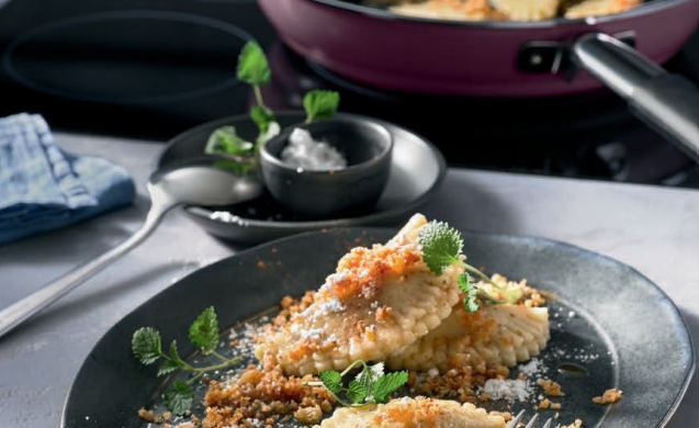 3. Zagotuj dużą ilość lekko osolonej wody w niskim garnku Fusiontec Mineral 20 cm. Włóż sakiewki z powidłami, zdejmij garnek z kuchenki i odstaw na co najmniej 5 minut.