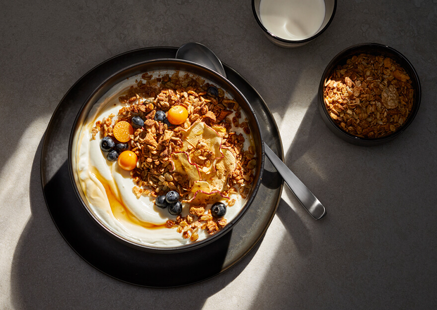 Pozostaw granolę do całkowitego ostygnięcia na talerzu lub papierze do pieczenia, pokrusz i przechowuj w szczelnym pojemniku.