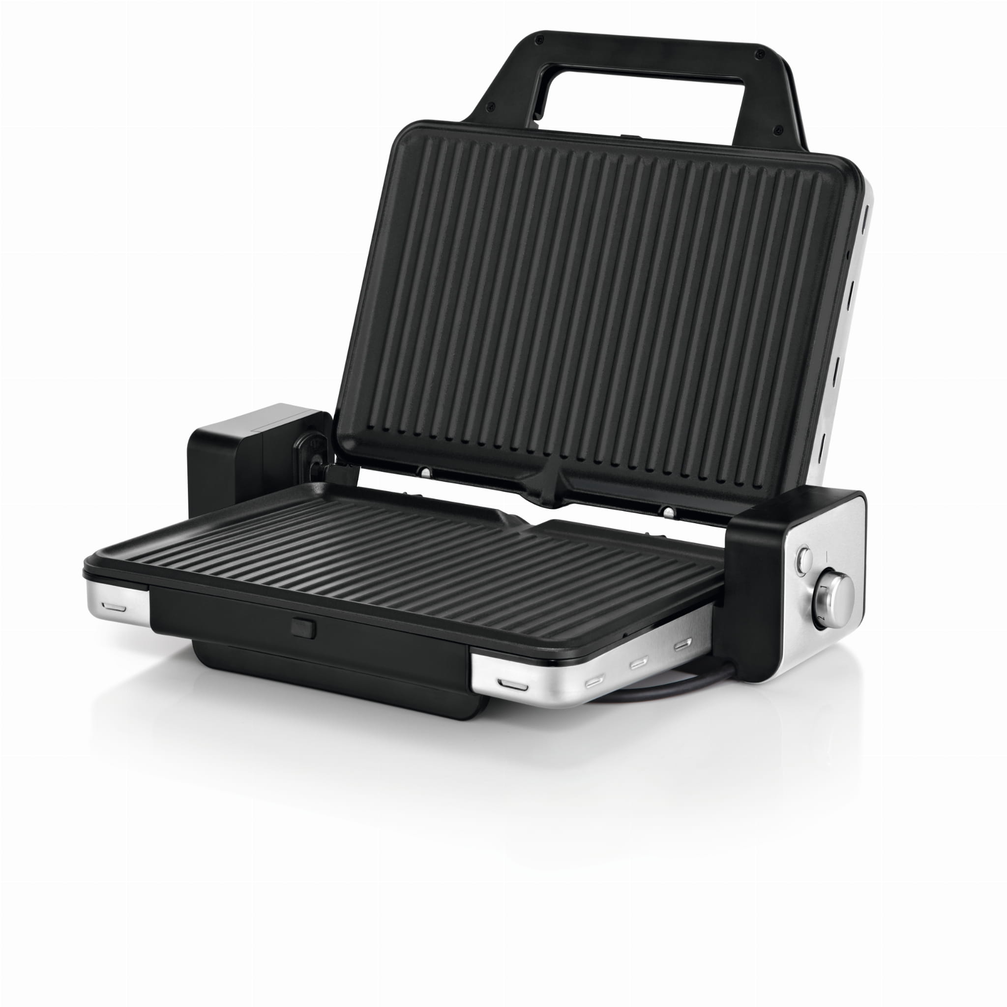 Urządzenie można rozłożyć i użytkować jako grill stołowy - tworząc tym samym dużą powierzchnię, która umożliwi przygotowanie każdego kawałka mięsa i warzyw. Natomiast, kiedy chcielibyśmy zrobić tosty wystarczy otworzyć urządzenie, włożyć pieczywo, po czym domknąć grill – by móc cieszyć się funkcja opiekacza.