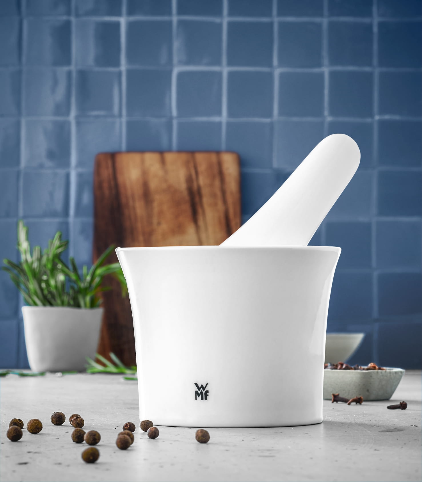 Moździerz z kolekcji Gourmet to klasyczna forma wykonana z wysokiej jakości białej porcelany - która pomoże nam wydobyć nawet najskrytsze aromaty wybranych ziół i przypraw.