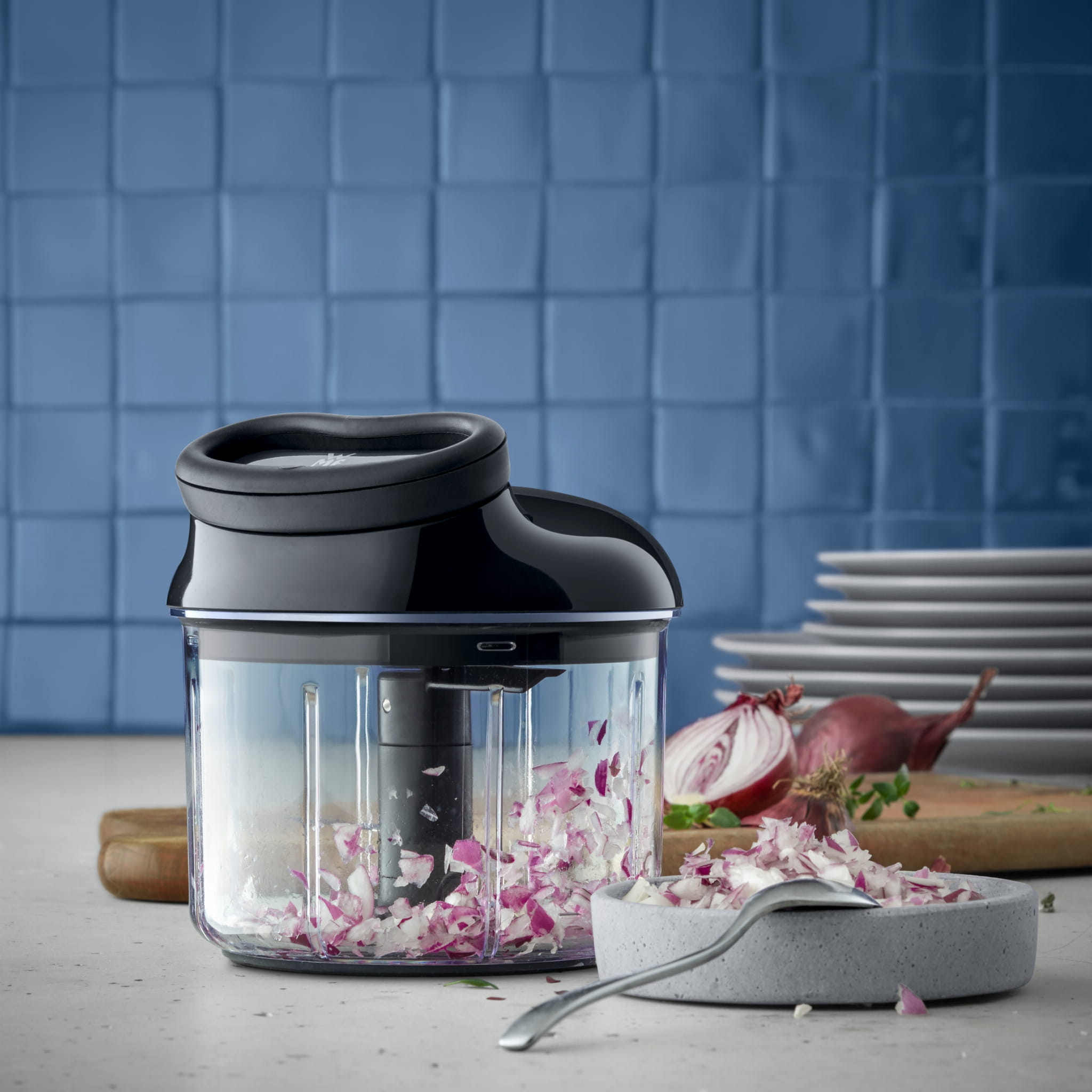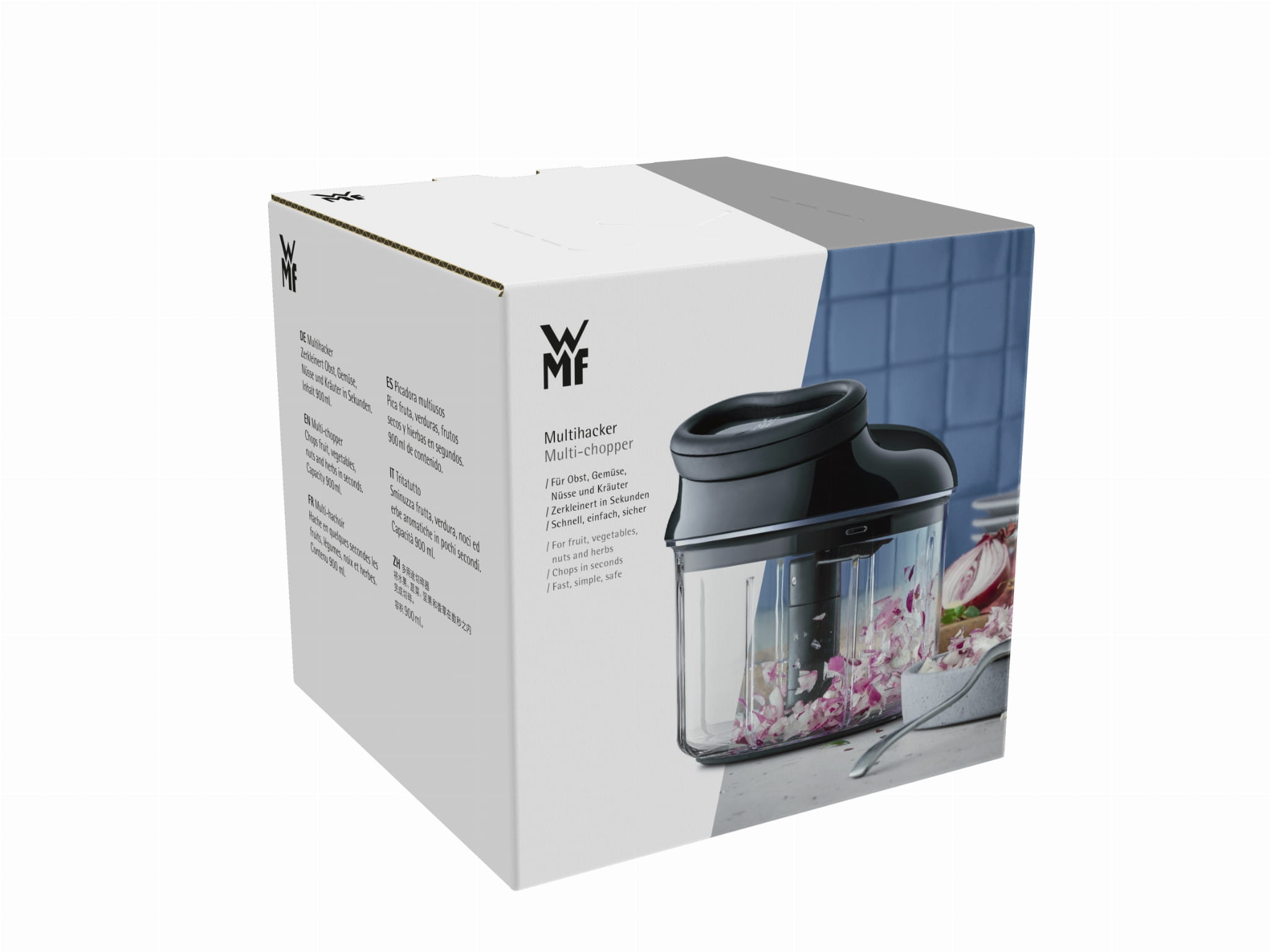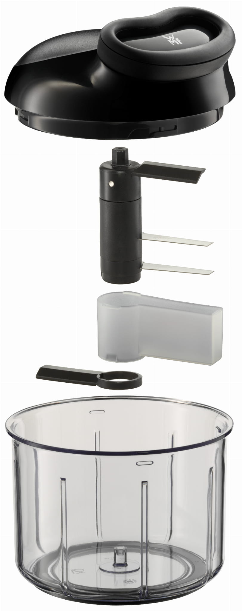 Poręczny rozdrabniacz WMF pozwala na siekanie i rozdrabnianie warzyw, orzechów oraz ziół w szybki i prosty sposób. Ostrza siekacza zostały wykonane ze stali nierdzewnej oraz zamontowane zostały na dwóch wysokościach, umożliwiając doskonałe rozdrobnienie składników.