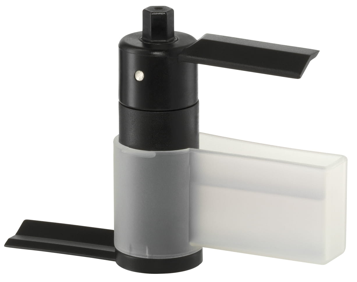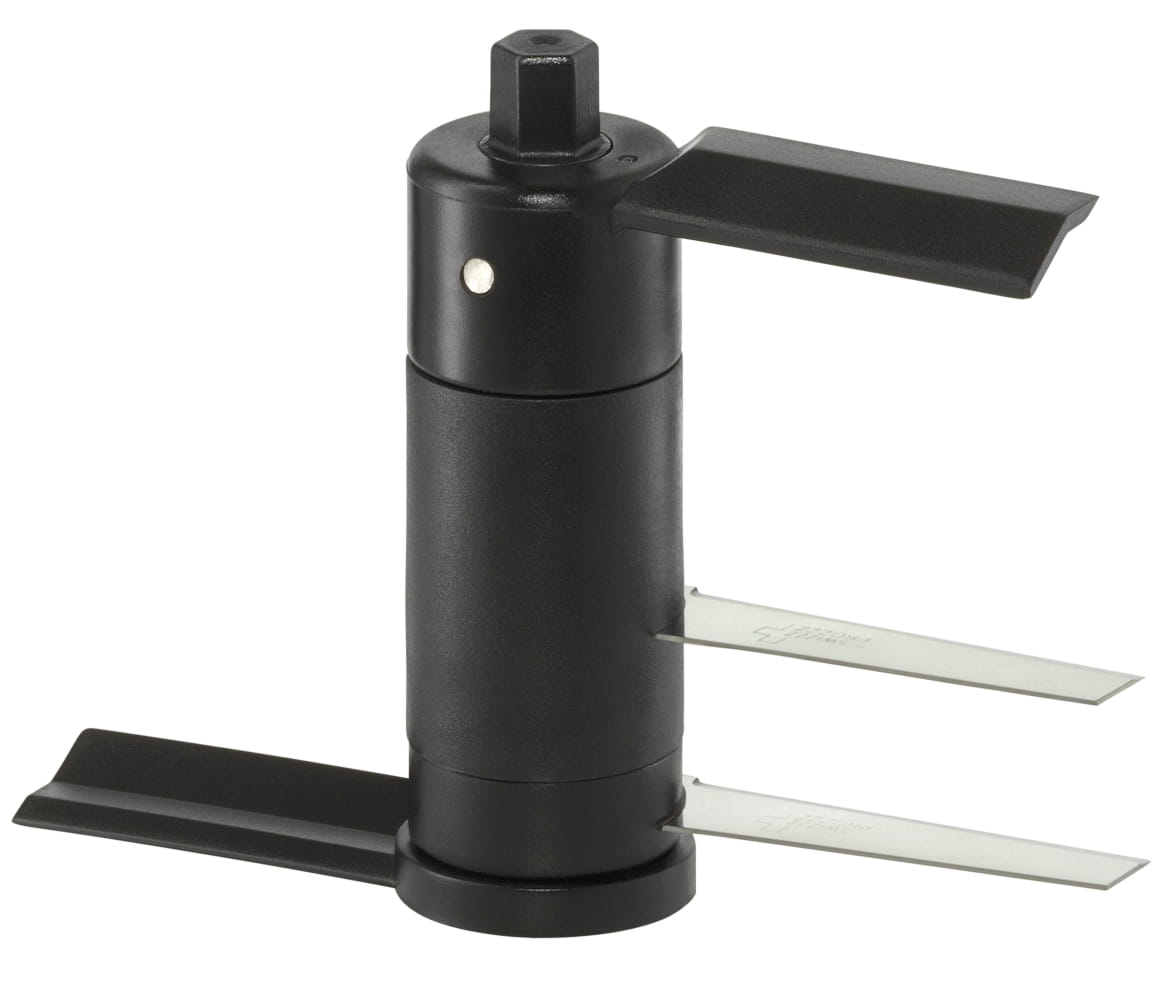 Czarna szpatułka znajdująca się w mechanizmie dokładnie zbiera wszystkie składniki z dna pojemnika oferując dokładne posiekanie składników.