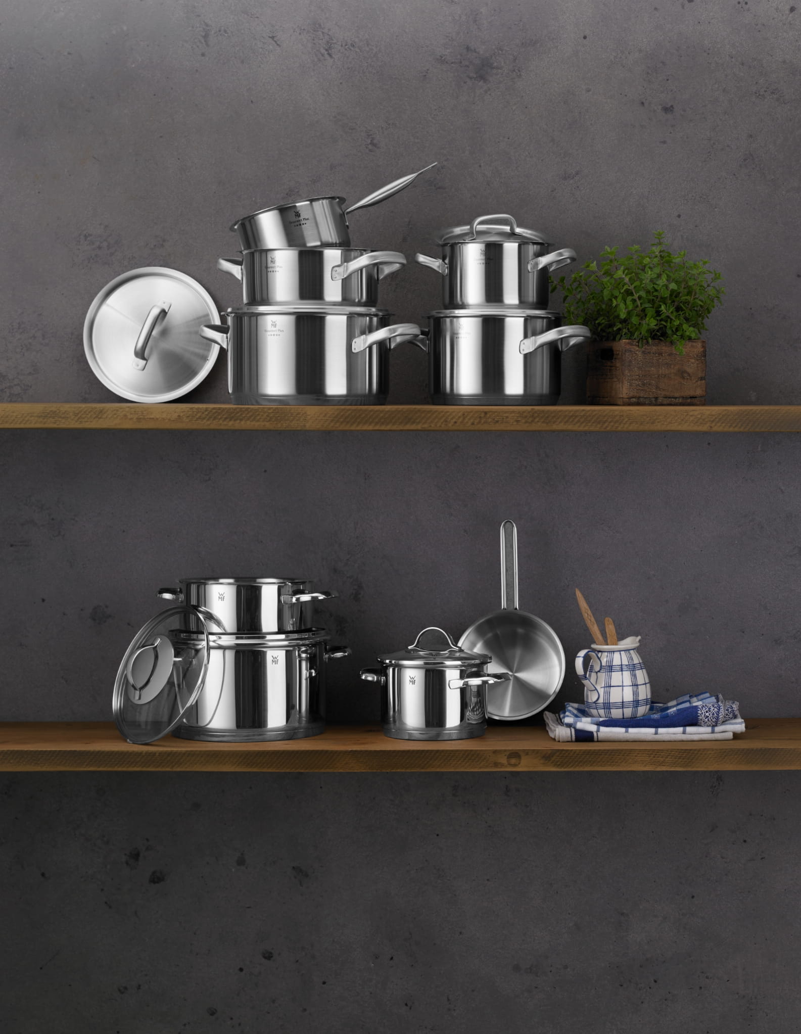 Zestaw garnków to niezbędnik dla wszystkich którzy kochają gotować, gdyż częste gotowanie przeróżnych dań przekłada się na użycie w jednym czasie wielu garnków. Komplet garnków z kolekcji Gourmet Plus to bez kompromisu klasa premium, oferująca aż 9-cio elementowy zestaw - który z pewnością sprosta każdemu wyzwaniu w naszej kuchni.